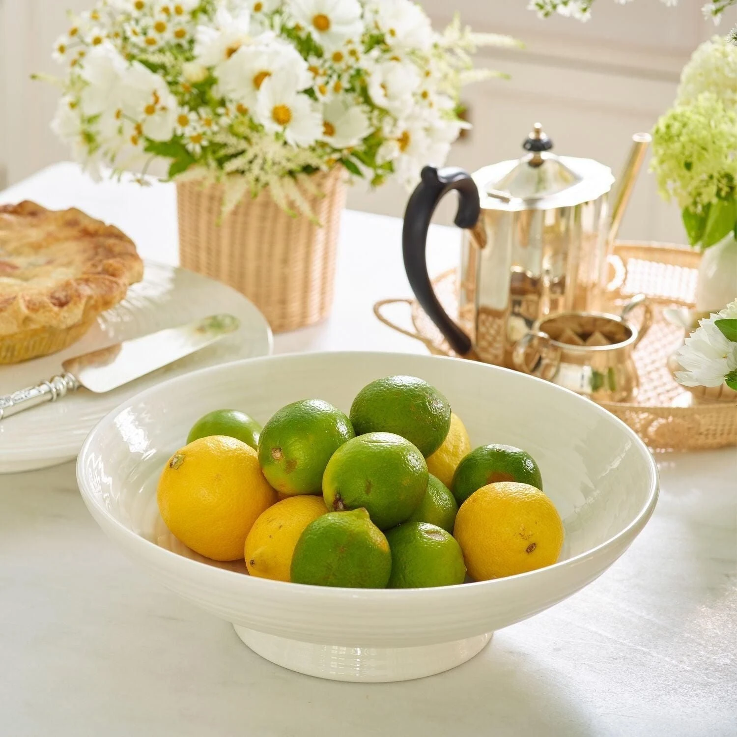 This handcrafted ceramic bowl is enhanced by a ribbing effect created by the potter’s own hand. It has a pure, artisanal look, and is versatile enough for daily use or to add character to a table setting when entertaining. A beautiful bowl for fruit or to serve vegetables or salad.