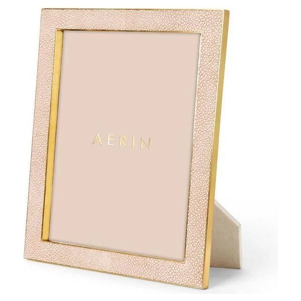 This modern yet classic frame juxtaposes the luxury and texture of embossed shagreen trimmed in polished brass.