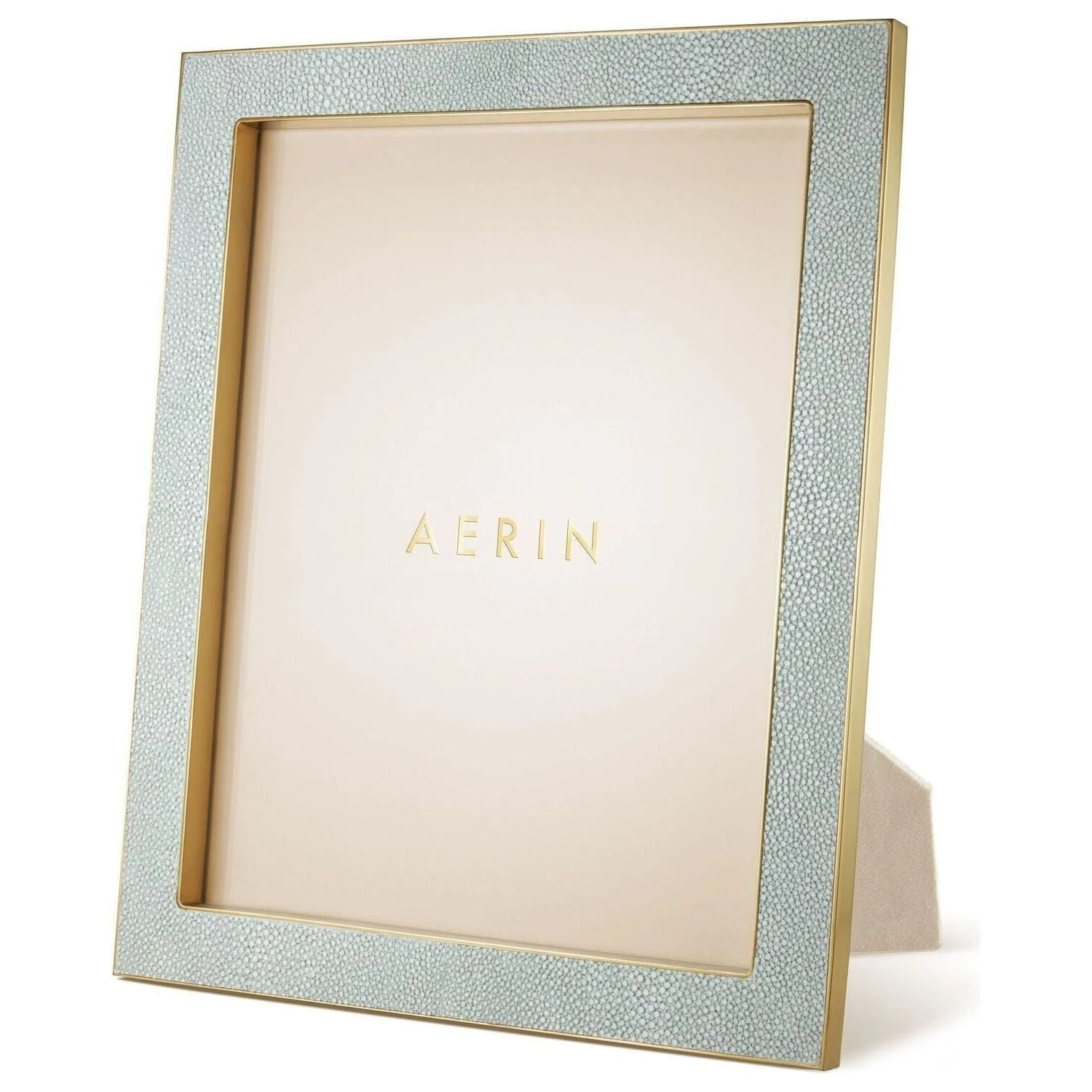 modern yet classic frame juxtaposes the luxury and texture of embossed shagreen trimmed in polished brass.