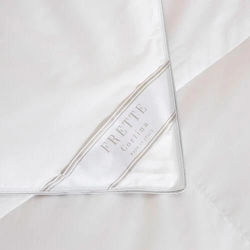 Encased in silky white cotton sateen, the Cortina duvet is filled with naturally light and extremely soft Polish goose down – excellent at springing back into shape and retaining its enduring fluffiness. Medium density.
