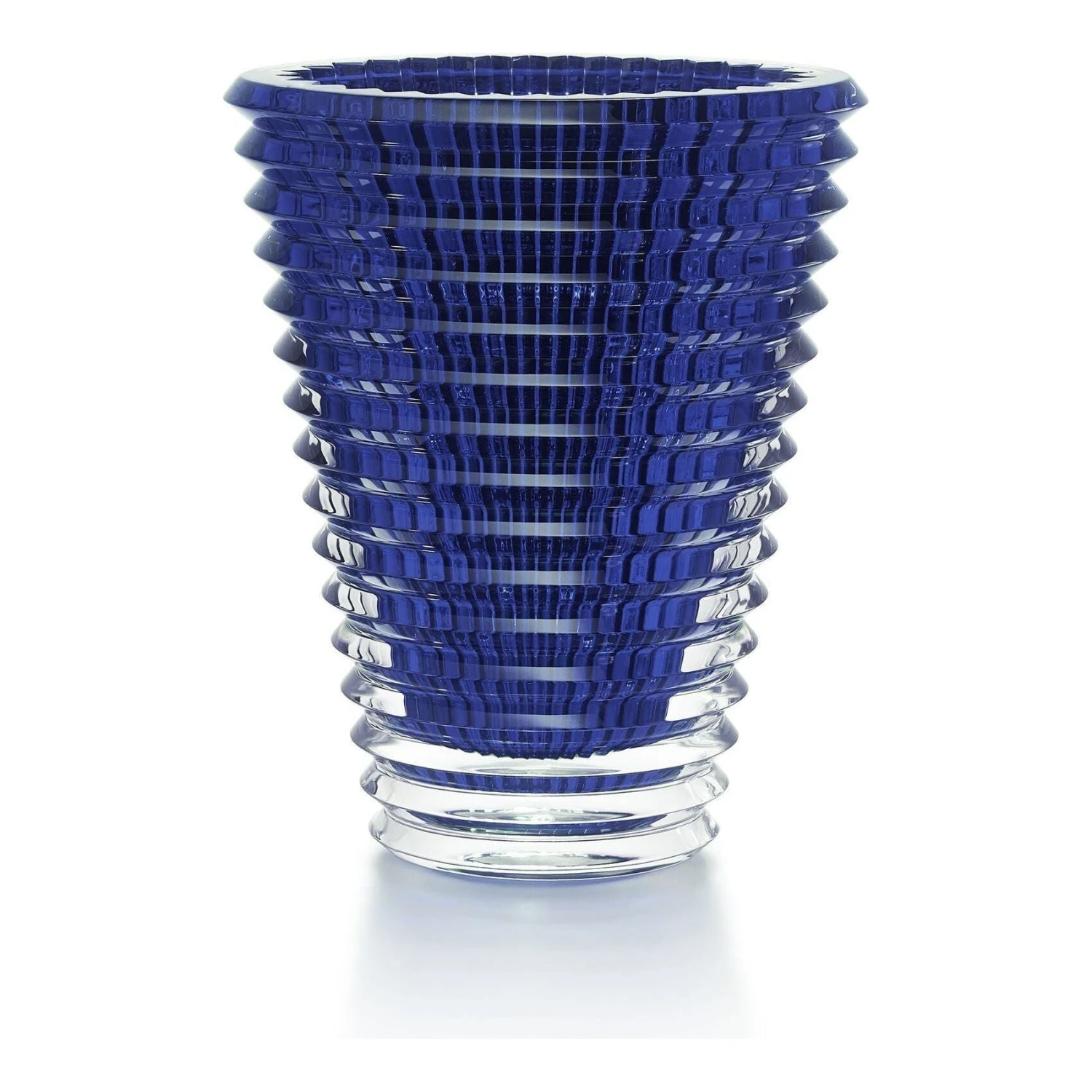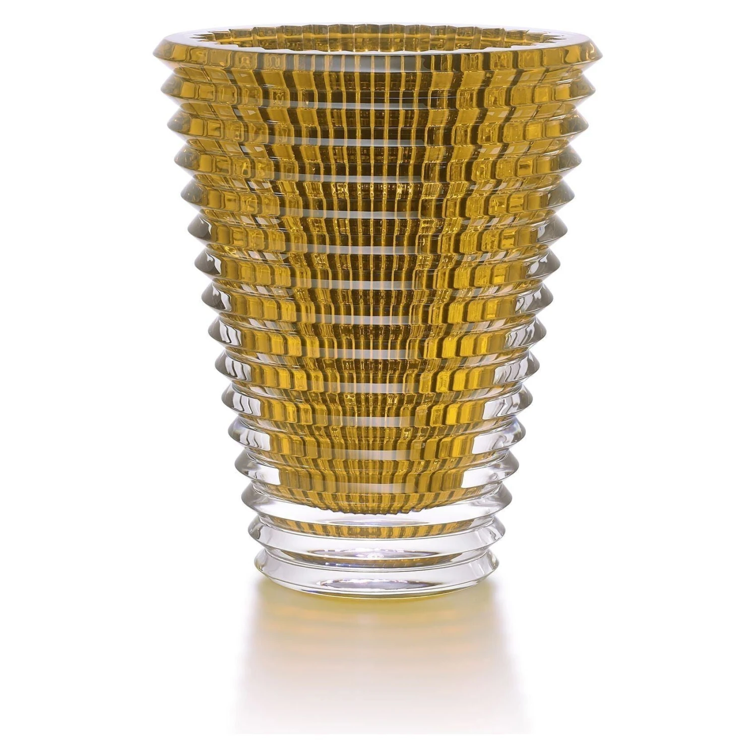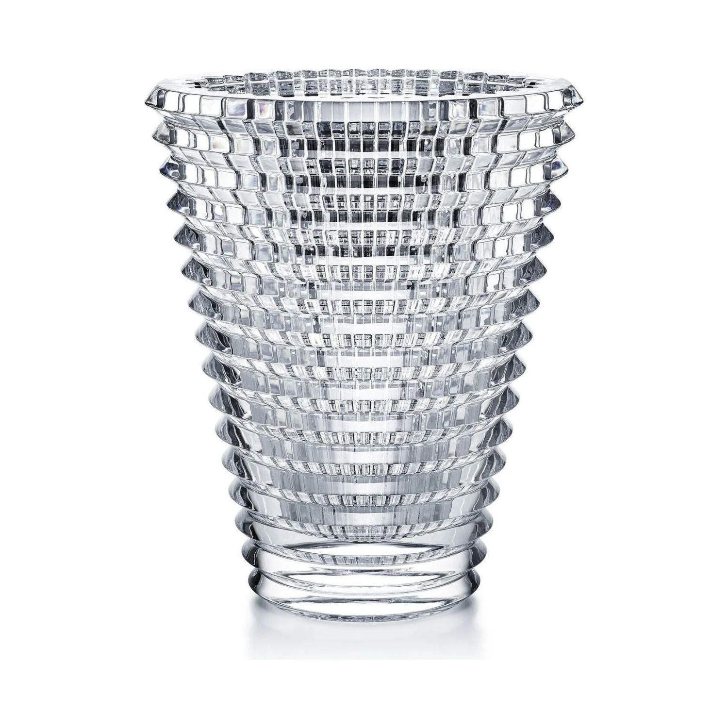 The wavy design of the crystal Eye vase comes from an extraordinary technique: exterior horizontal cuts and interior vertical cuts combine to produce a magic visual effect