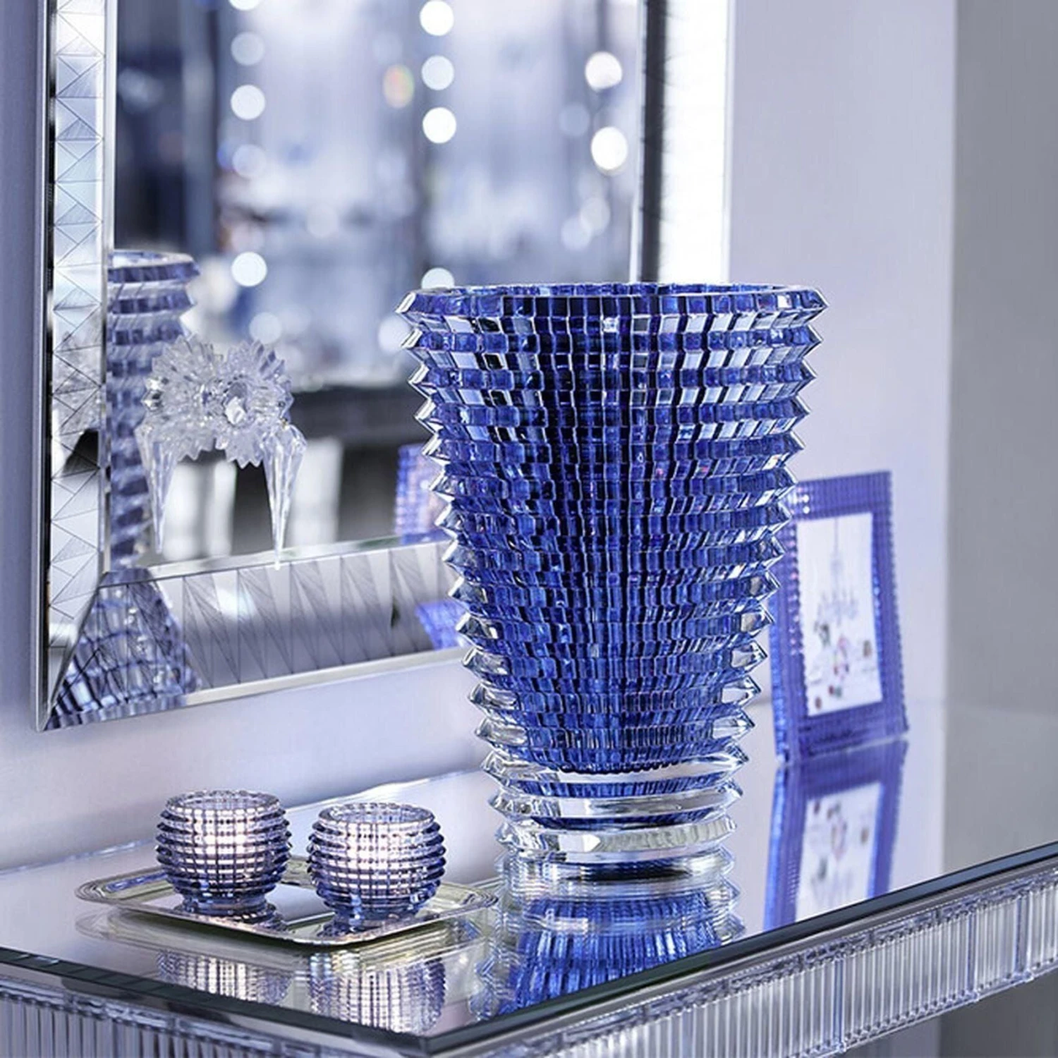 With bevel cuts conjuring perpetual movement, the Eye vase is a spiral of light. The Eye Vase fabrication produces a multitude of shades and shapes leaving scope for an infinite number of compositions for every taste and in every colour.