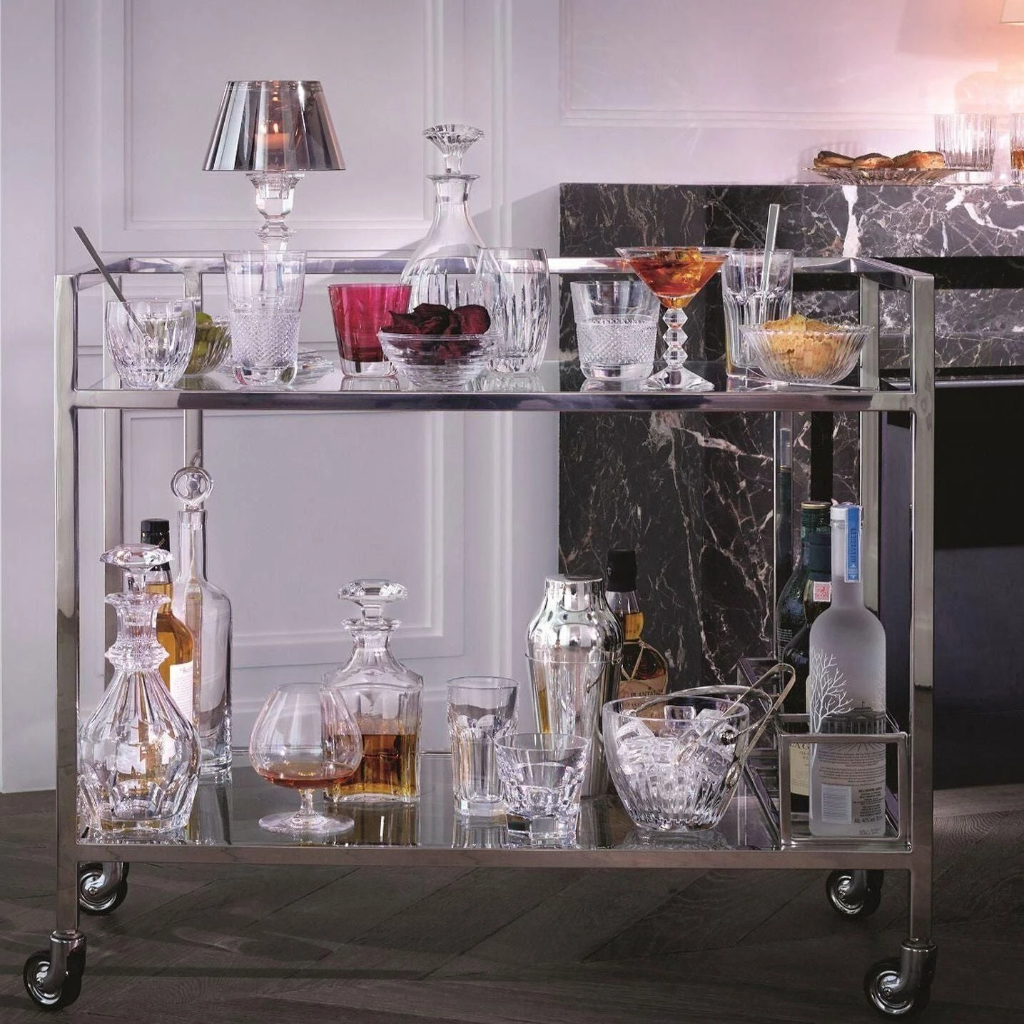 The deep orgue bevel cuts, which are characteristic of the Massena bar collection, irradiate upward from the base. These deep cuts create an incredibly beautiful optical effect—all the more so when the bucket is full of cold, glistening ice. The polished stainless steel handle complements the Clear crystal with a modern sheen. This artfully beveled silhouette adds visual splendor to any festive soirée. Baccarat’s Massena barware extends to highballs, tumblers, and decanters, each of which share the ice bucket’s textural qualities. For a well-stocked bar, the Massena ice bucket is a must for celebratory occasions.
