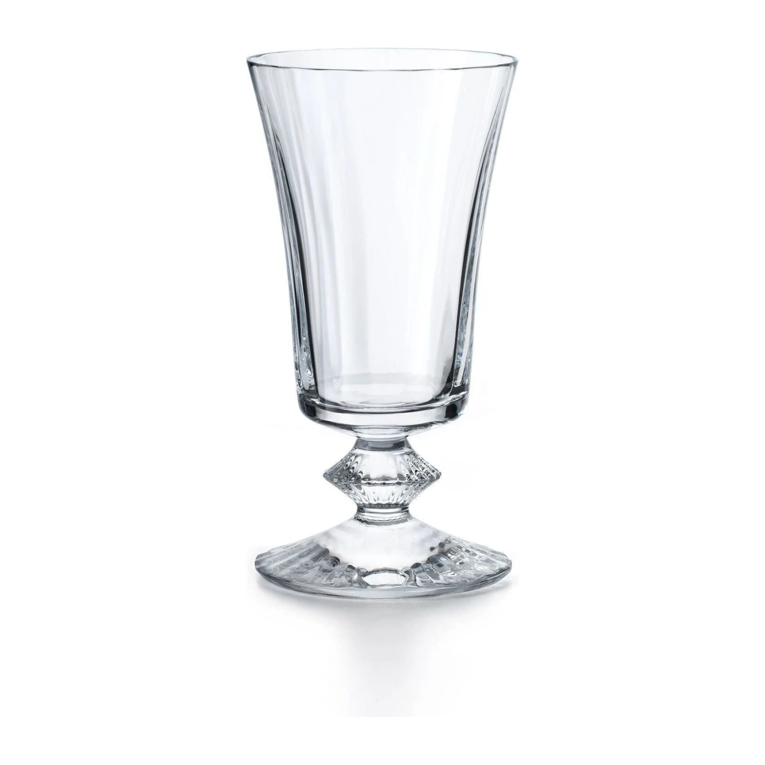 The Mille Nuits Clear crystal tall glass has barely-perceptible alternating stripes, gently diffusing all light in nuanced ripples. The stripes are also visible on the foot of the glass, irradiating from the stem.