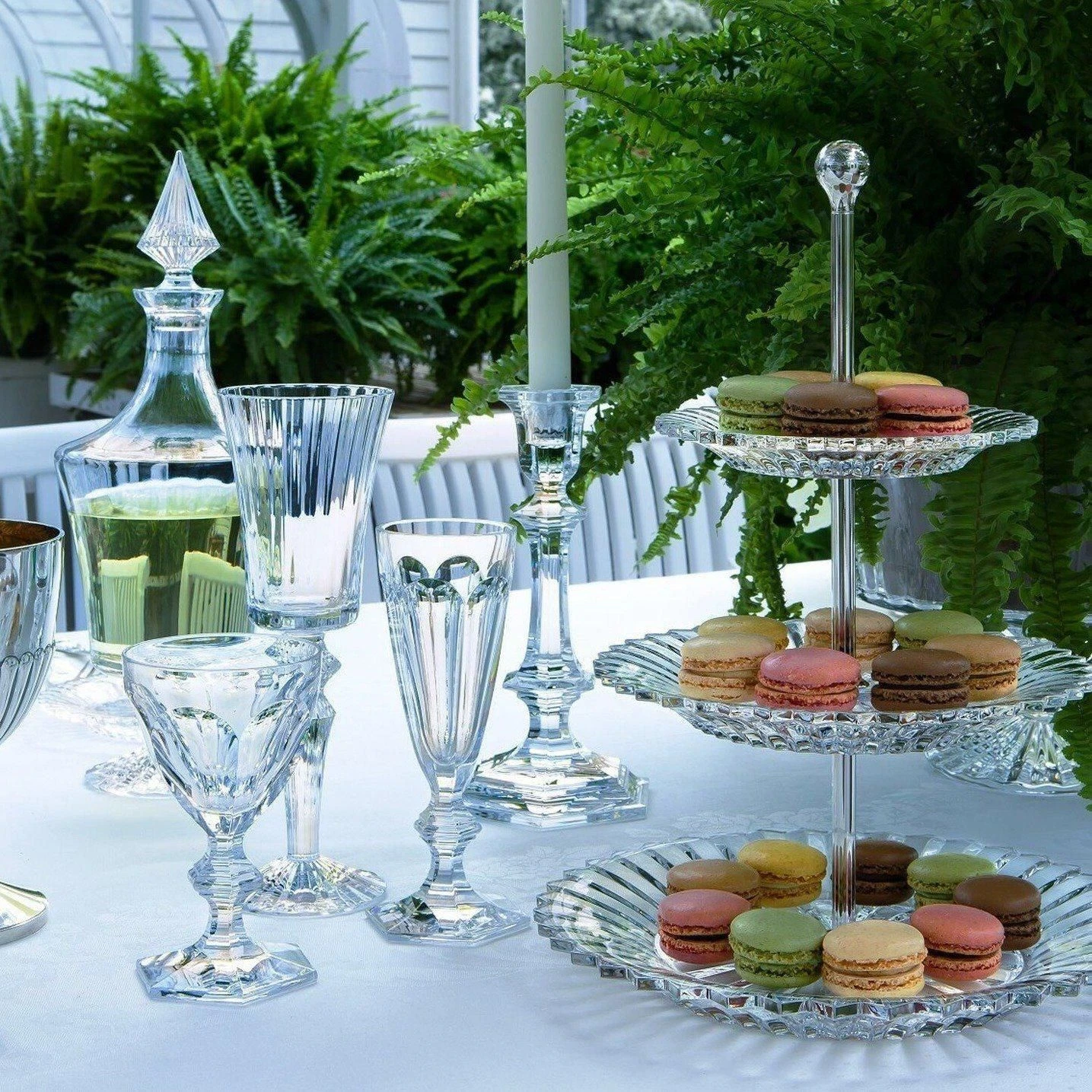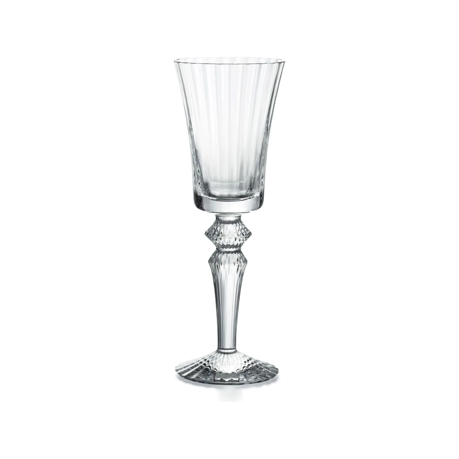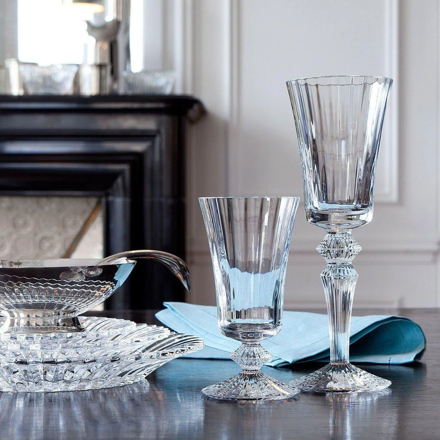 Designed by Mathias for Baccarat, the name Mille Nuits is a reference to the 1001 Tales of The Arabian Nights, and to the world of the Orient. The signature of the Mille Nuits set is the elegant diamond-cut centre, which sits just between the bowl and the top of the stem. The Mille Nuits collection is also comprised of champagne flutes available in a variety of vivid colours. Within Tableware, the Mille Nuits collection extends to decanters and plates. Within the Home Décor category, the Mille Nuits collection extends to chandeliers, lamps, candelabras.