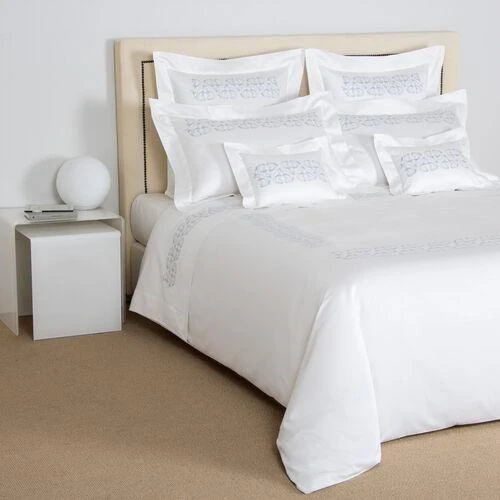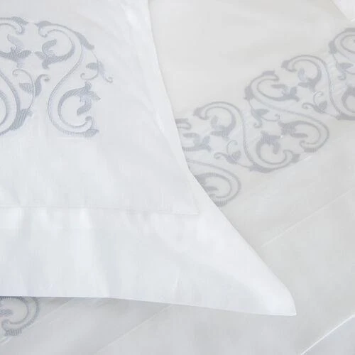 Crafted with pure cotton sateen and featuring an intricate arabesque embroidery, the Ornate Medallion Embroidered Sheet Set is delicate yet modern, the perfect blend of classic styling and contemporary design.