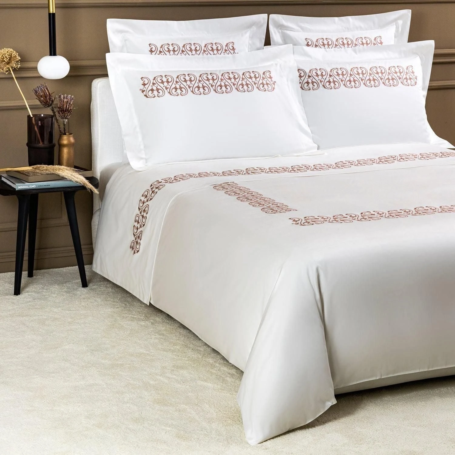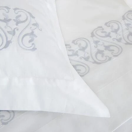 Crafted with pure cotton sateen and featuring an intricate arabesque embroidery, the Ornate Medallion Embroidered Duvet Cover is delicate yet modern, the perfect blend of classic styling and contemporary design.