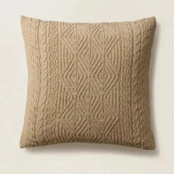 Reminiscent of a classic cable-knit sweater, the Owen throw pillow features a chunky textured motif crafted with cotton crepe yarn.