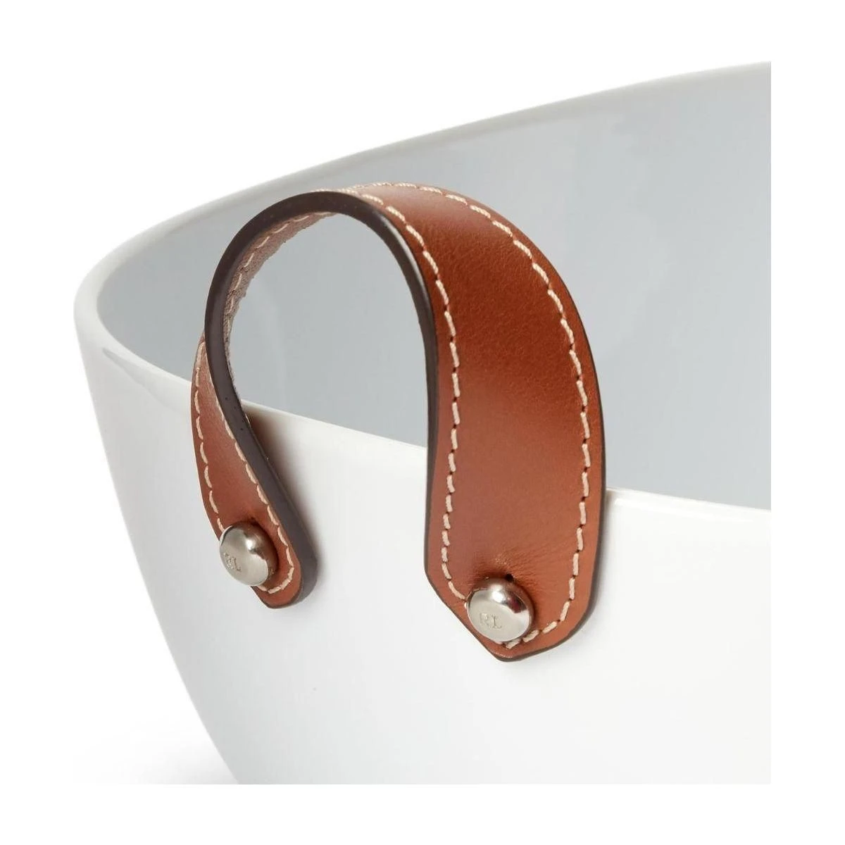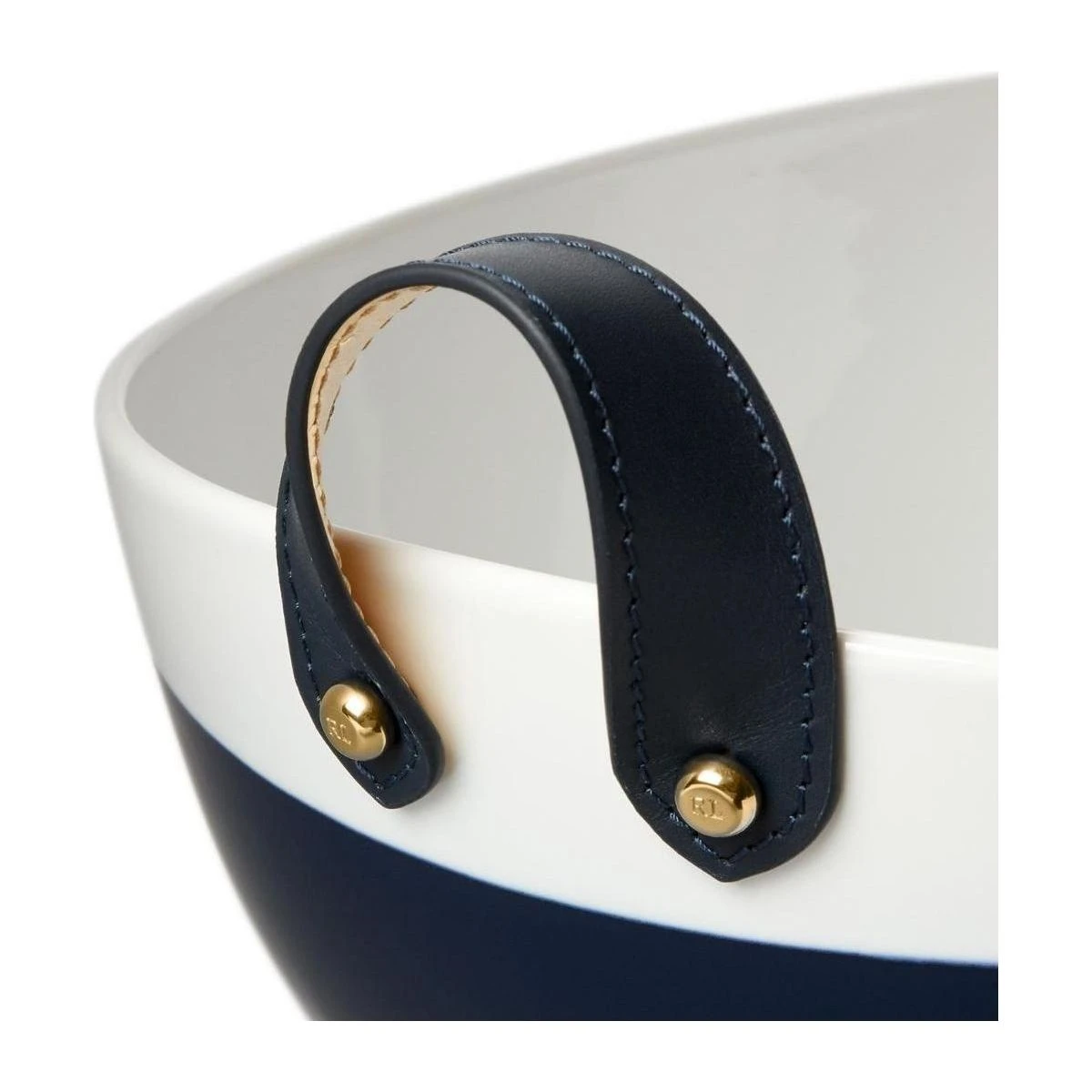 Ralph Lauren’s best-selling Wyatt collection is updated this season by pairing smooth porcelain with rich navy leather accents.