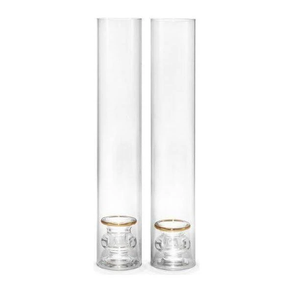 It is enhanced with a hand-painted gold rim creating a soft, warm glow. The holder sits inside a clear glass sleeve, which has a contemporary look and a practical use, particularly when dining outside.