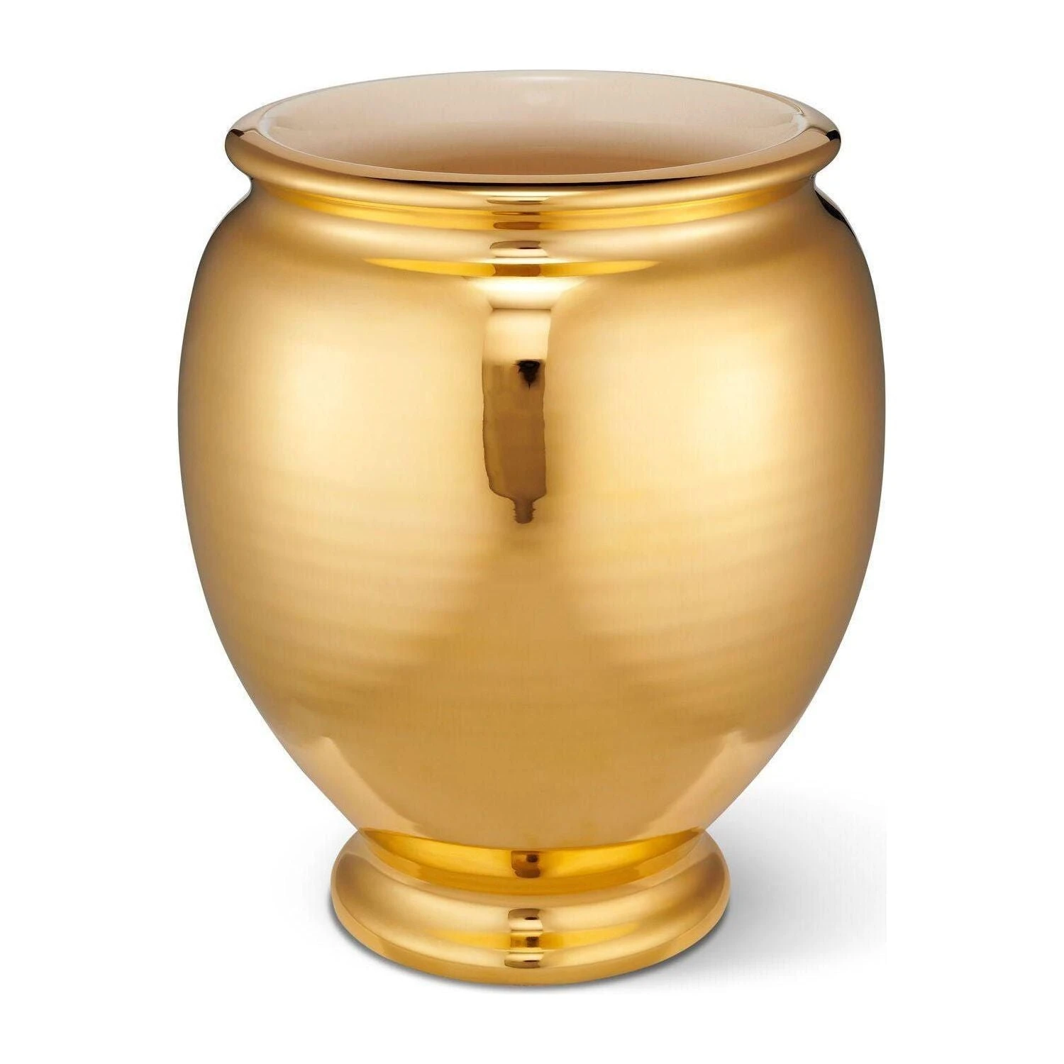 It is a perfect choice for a side table. Hand thrown, each vase has subtle ribbing on the surface, giving it an artisanal quality, and is enhanced with a gilded finish, which works beautifully as a contemporary neutral.
