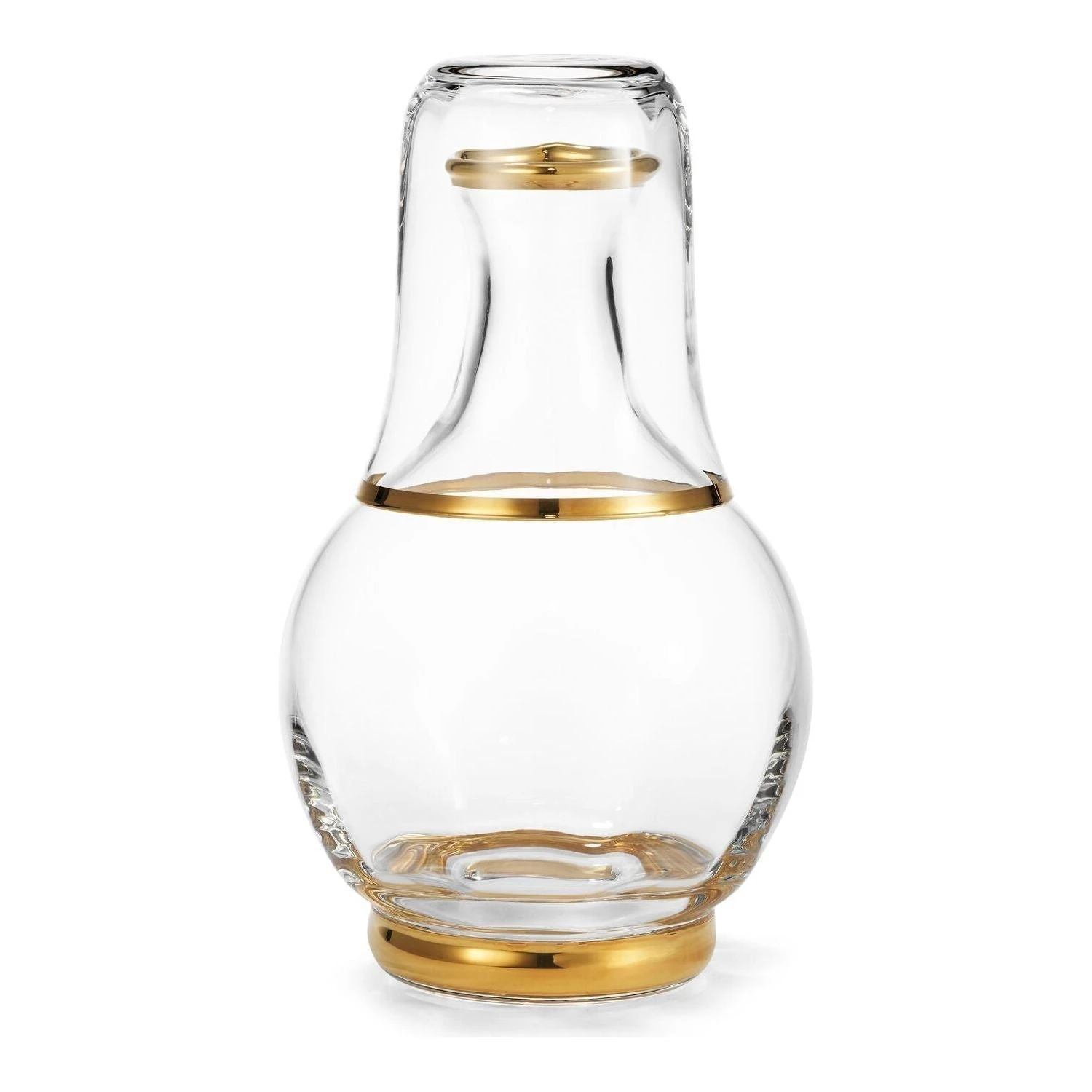 This beautifully crafted carafe and tumbler set, enhanced with hand-painted gold, is an elegant addition to a bedside table.