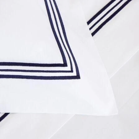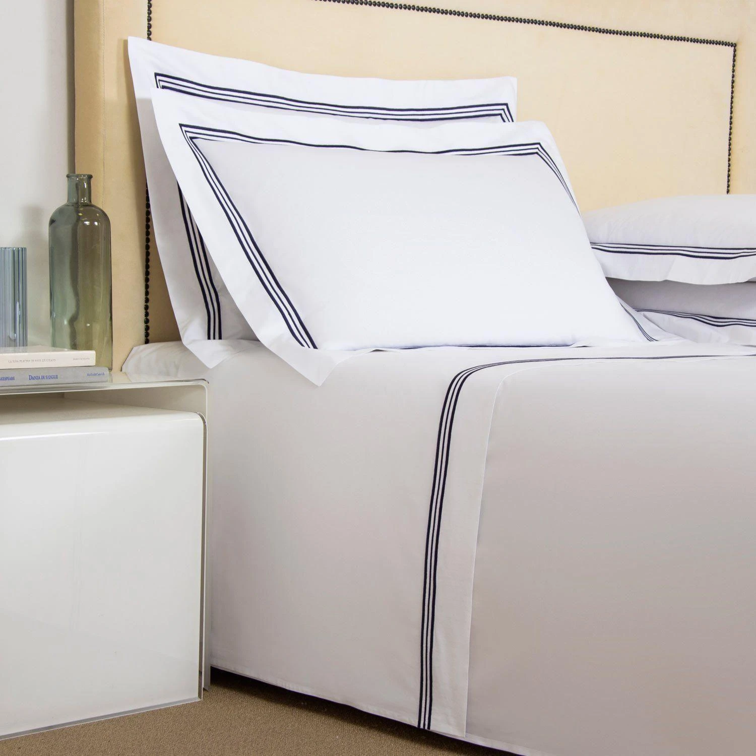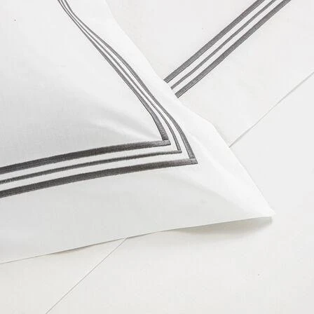 Soft and smooth with high shine, the Triplo Bourdon Sheet Set is crafted from pure cotton poplin – the perfect balance between percale and sateen – and embellished with a three-line embroidery.