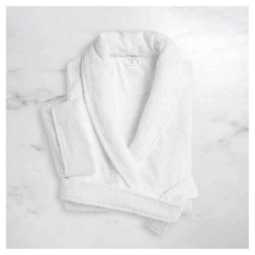 A classic style, the Unito Shawl Collar Bathrobe is a unisex knee-length robe in plush cotton terry, with a self belt and turned back cuffs in cotton sateen. The seams are covered with cotton sateen bias detail for extra comfort and durability. 100% cotton. Made in Italy.